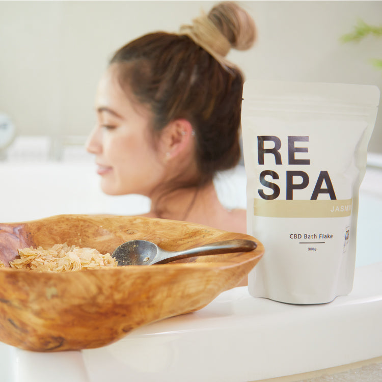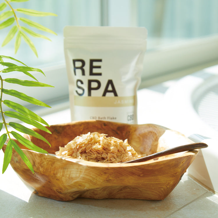 CBD成分配合の入浴剤、RESPA(リスパ)。バスソルトと同じ感覚で日頃の疲れを湯船で癒してください。まるでスパリゾートにいるかのようなリラックスしながらのゆったり時間をご自宅でお楽しみいただけます。